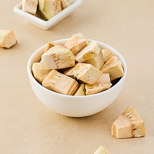 Fresh green jackfruit, cleaned and cut into pieces for easy cooking. Perfect for curries and traditional dishes, offering rich texture and authentic taste without the prep hassle.